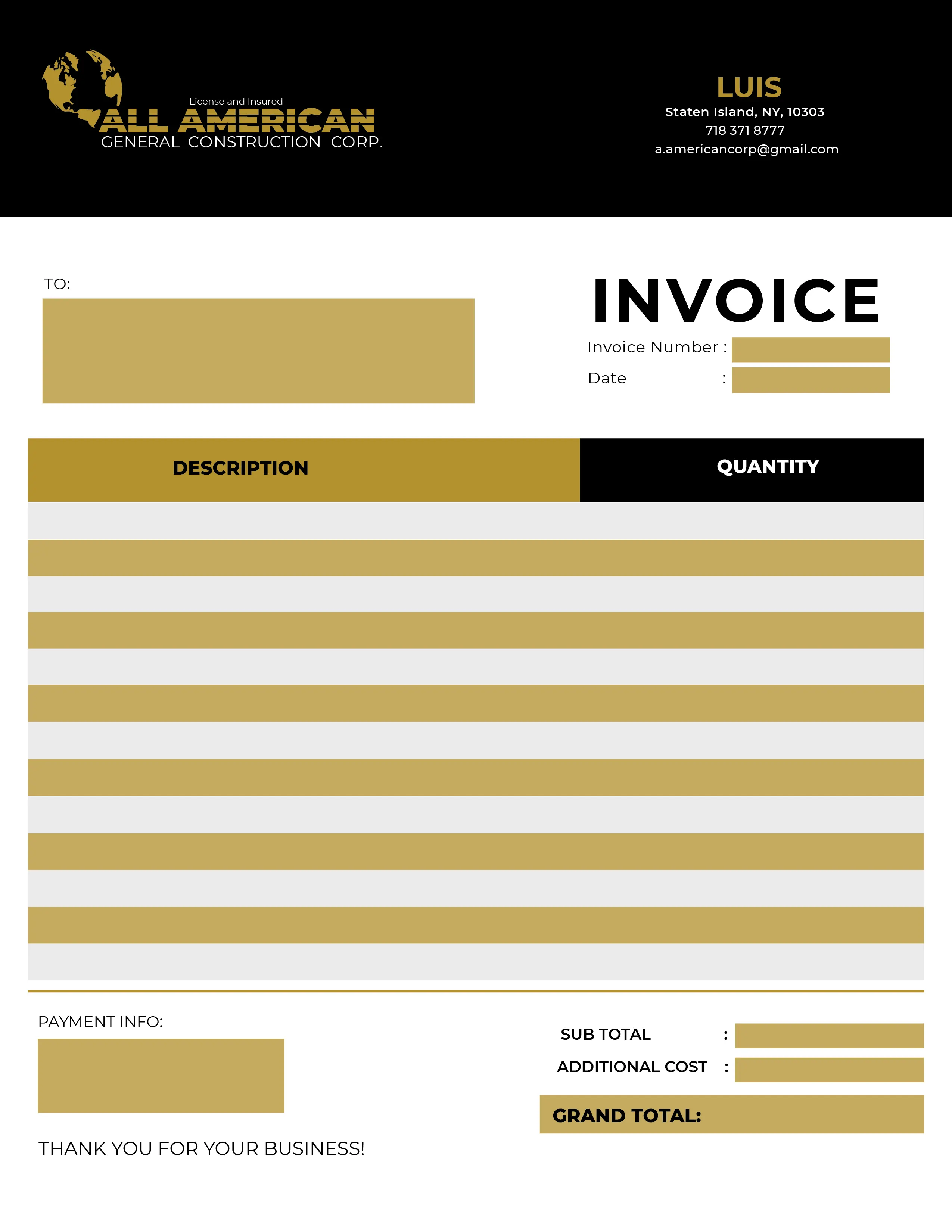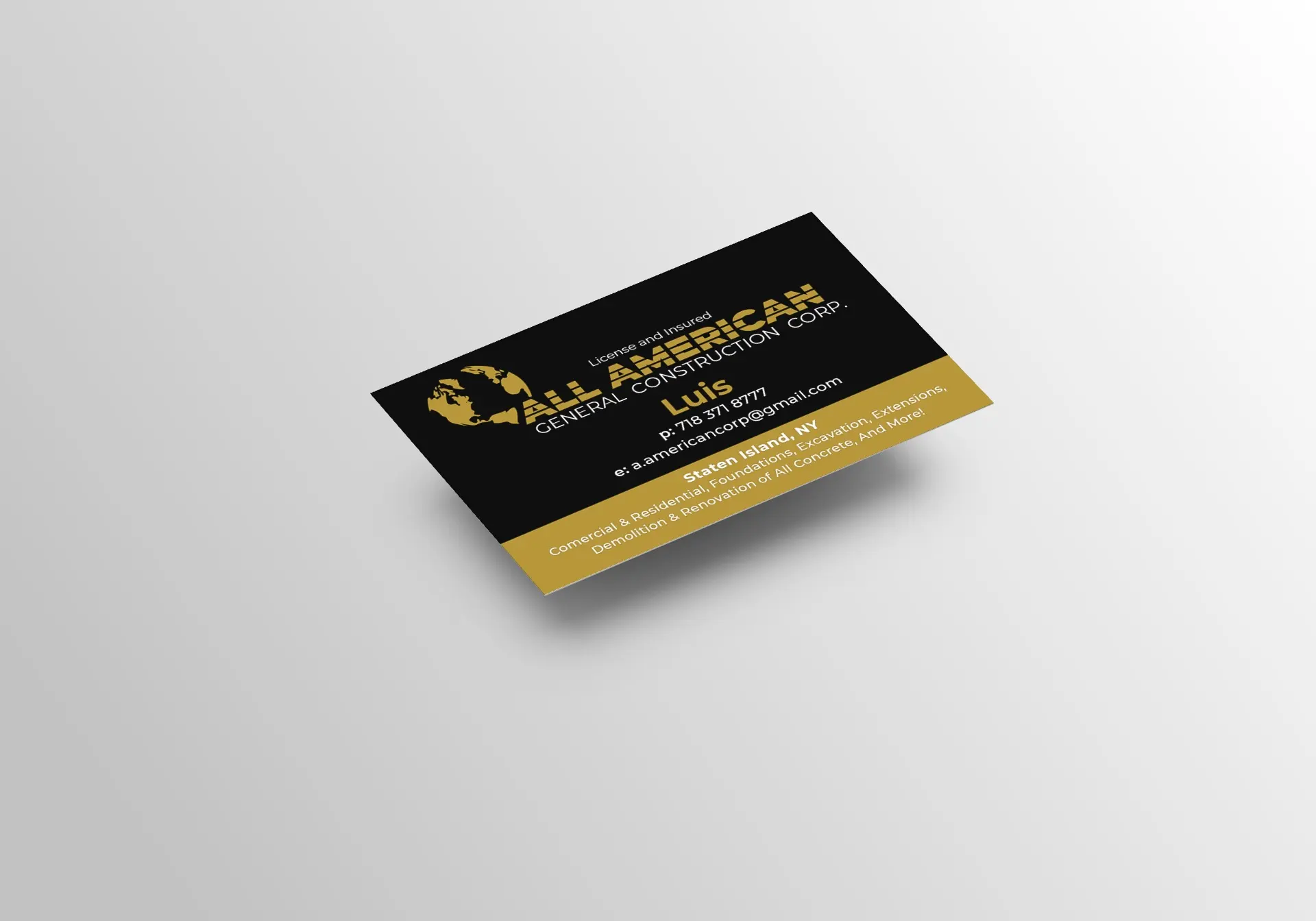 All American is a start-up general construction company. The thought process behind the logo came from the client. The clients specifically wanted a globe incorporated into his logo. To satisfy the client's exact demands, I alter the look of the logo using negative space rather than lines. With a few revisions, the logo was approved by the client. The typeface used in the logo is Montserrat Black, with some altercations to make it look like the stripes of the American flag which was another specific demand from the client. The gold color used in the branding is supposed to represent the color of the hard-hats that are used in construction.