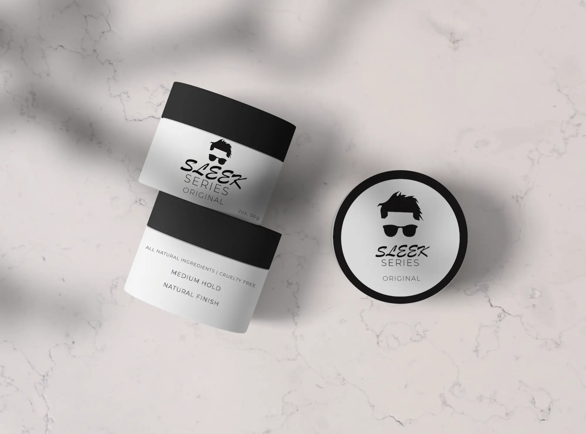 The Sleek Series project focuses on crafting a complete brand identity and packaging system for a premium men’s hair product line. This includes designing the product labels, jar packaging, and retail boxes—all unified under a cohesive visual language.